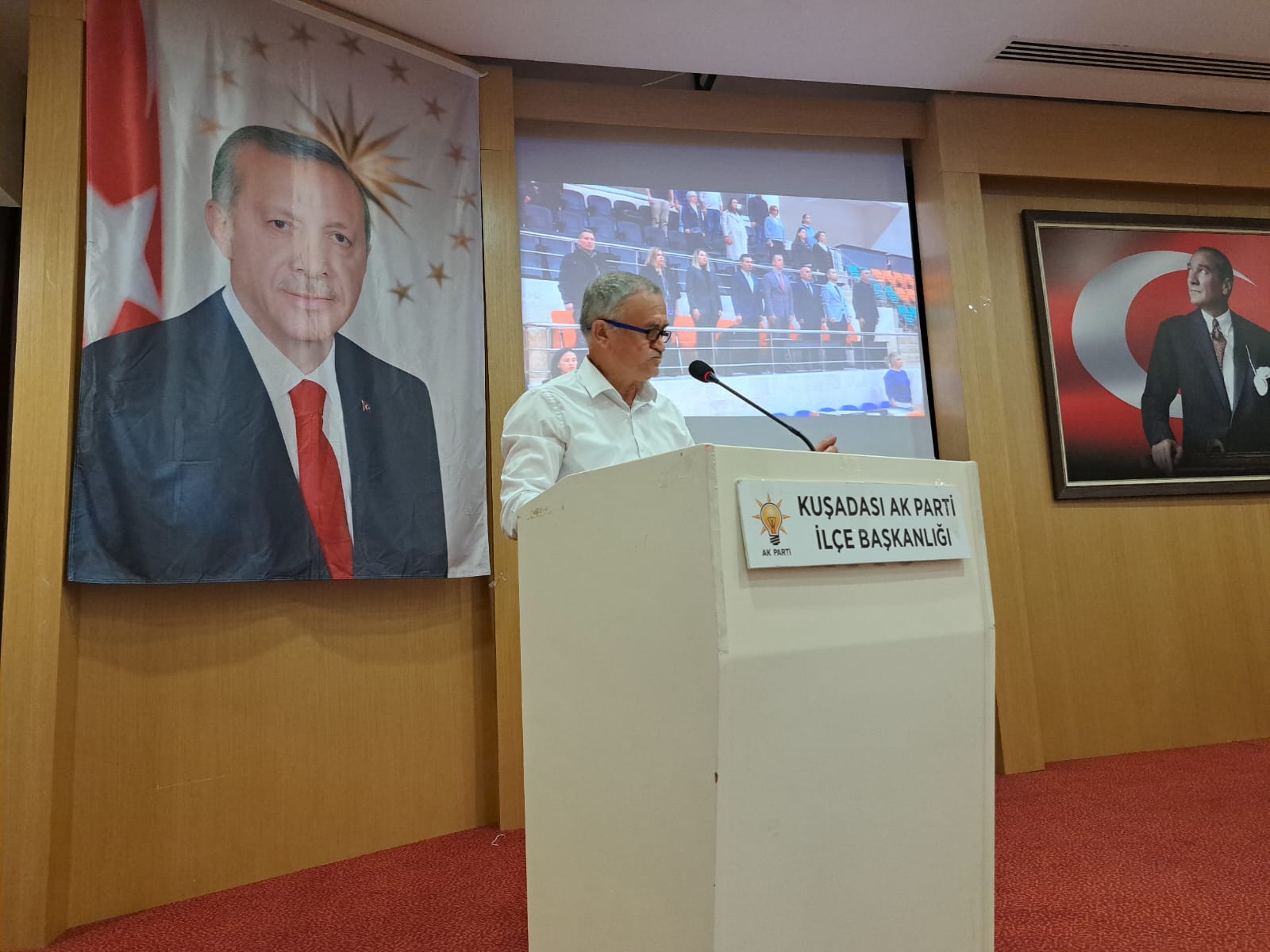 Bu bölümün ardından AK Parti Kuşadası İlçe Başkanı Fatih Sarıgöz kürsüye çıkarak güçlü mesajlar verdi. Sarıgöz, Cumhurbaşkanı Recep Tayyip Erdoğan’ın liderliğine vurgu yaparak şu ifadeleri kullandı: