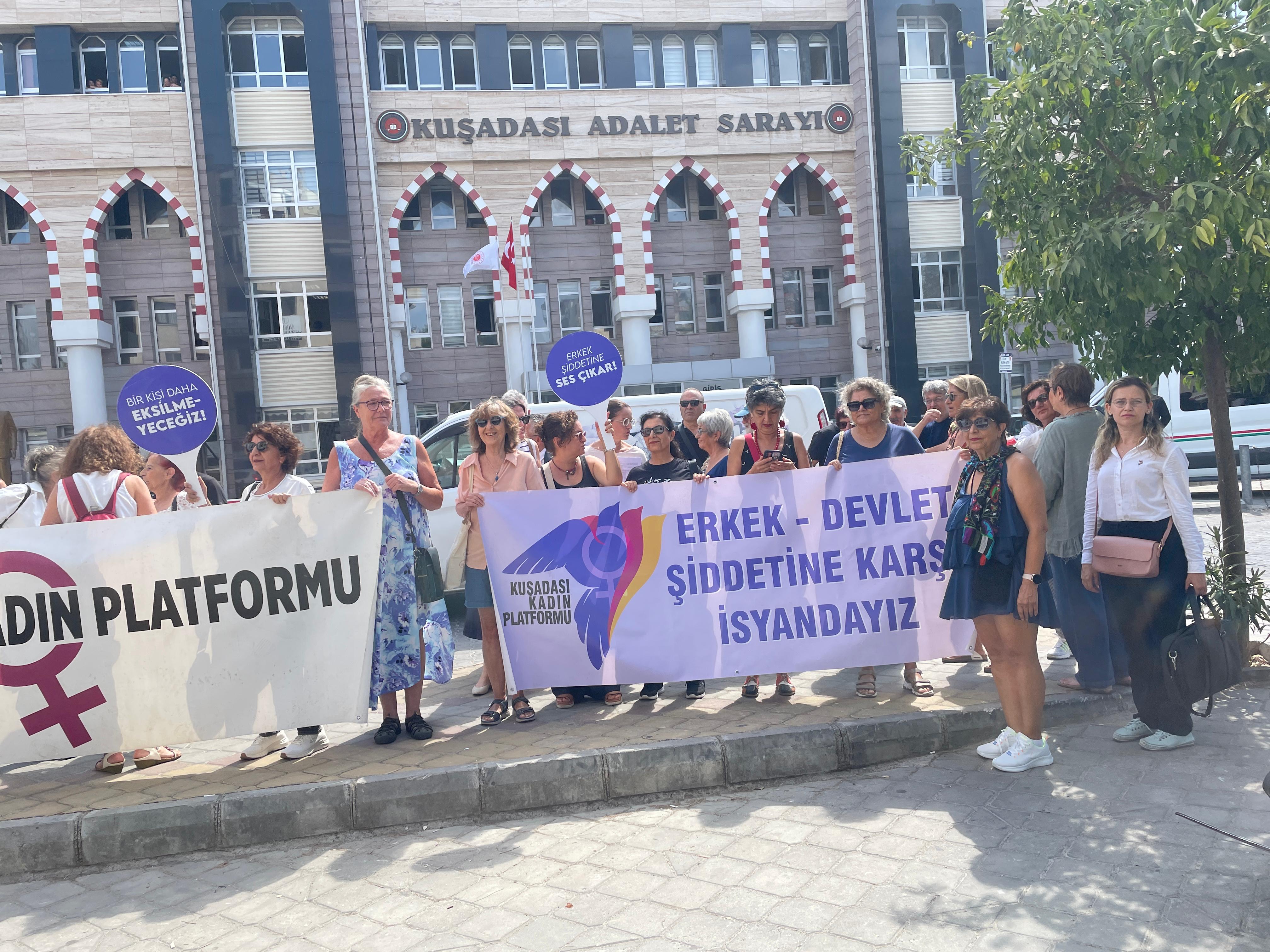 15 Eylül Pazartesi günü, Kuşadası Adliyesi önünde toplanan kalabalık grup, Avukat Eylem Asrav Akınhay’a destek verdi. Yaklaşık bir yıldır komşusu Bülent Karakoç’un taciz ve tehditlerine maruz kaldığını belirten Akınhay, yaptığı açıklamada “Yaşamak en temel hakkımızdır. Tacize, şiddete ve adaletsizliğe boyun eğmeyeceğiz” sözleriyle kamuoyuna seslendi.