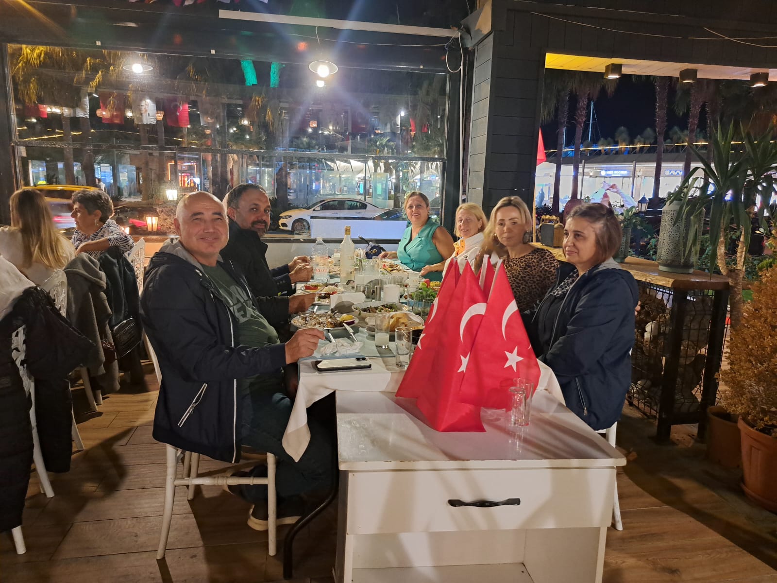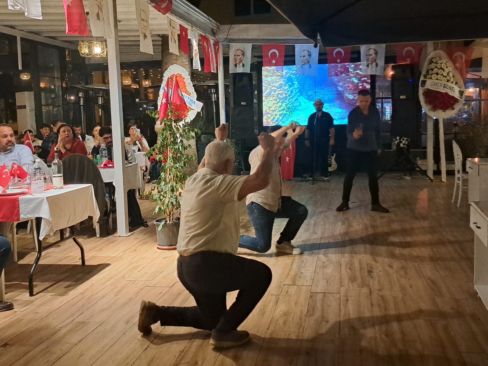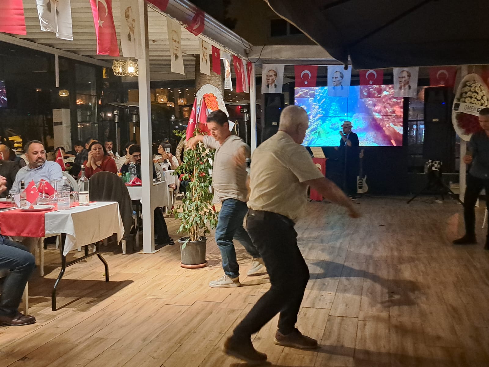 Cumhuriyet marşlarının söylendiği, Zeybek ve yöresel danslarla renklenen gecede, misafirler müzik eşliğinde geç saatlere kadar keyifli anlar yaşadı. Bayraklarla bütünleşen sahne, Cumhuriyet coşkusunu doruğa taşıdı.