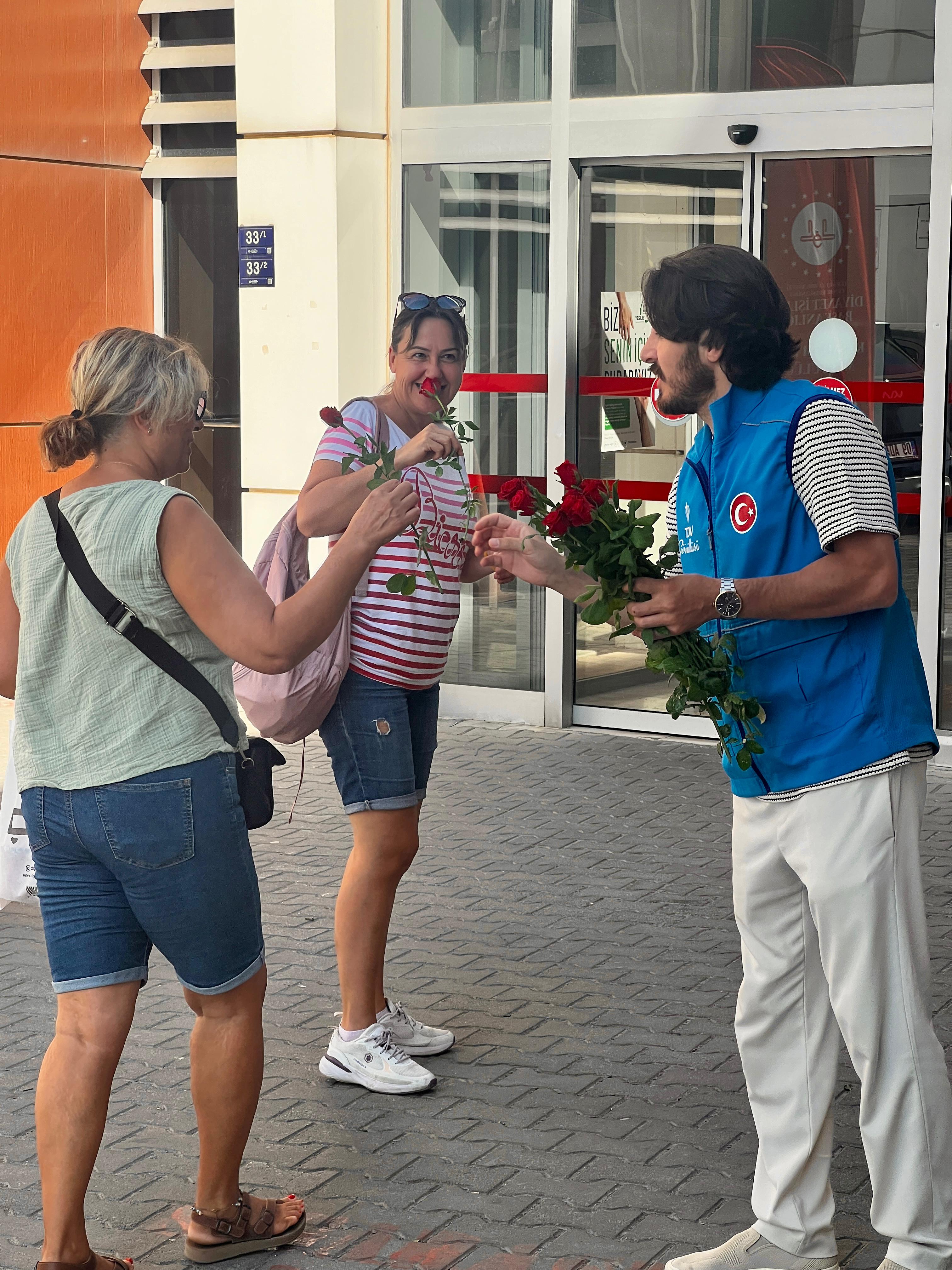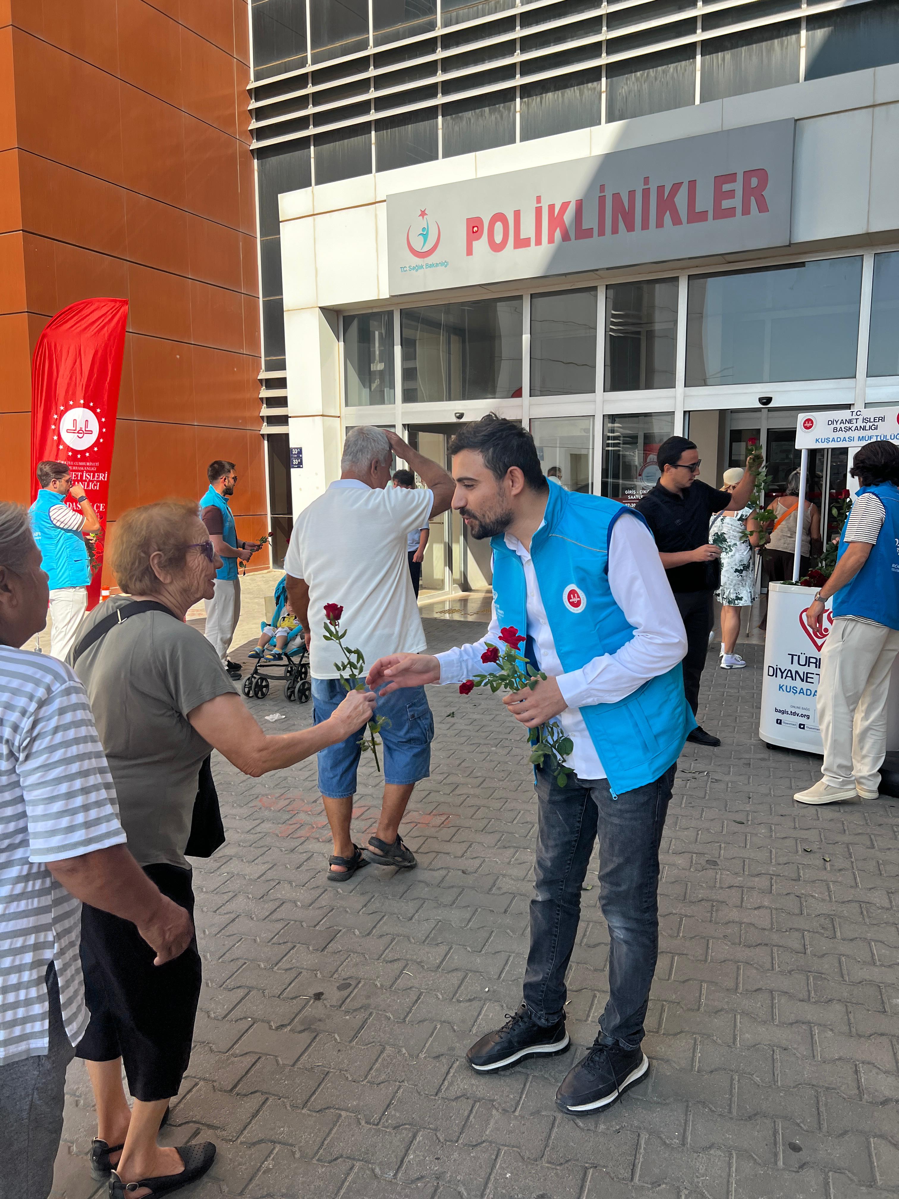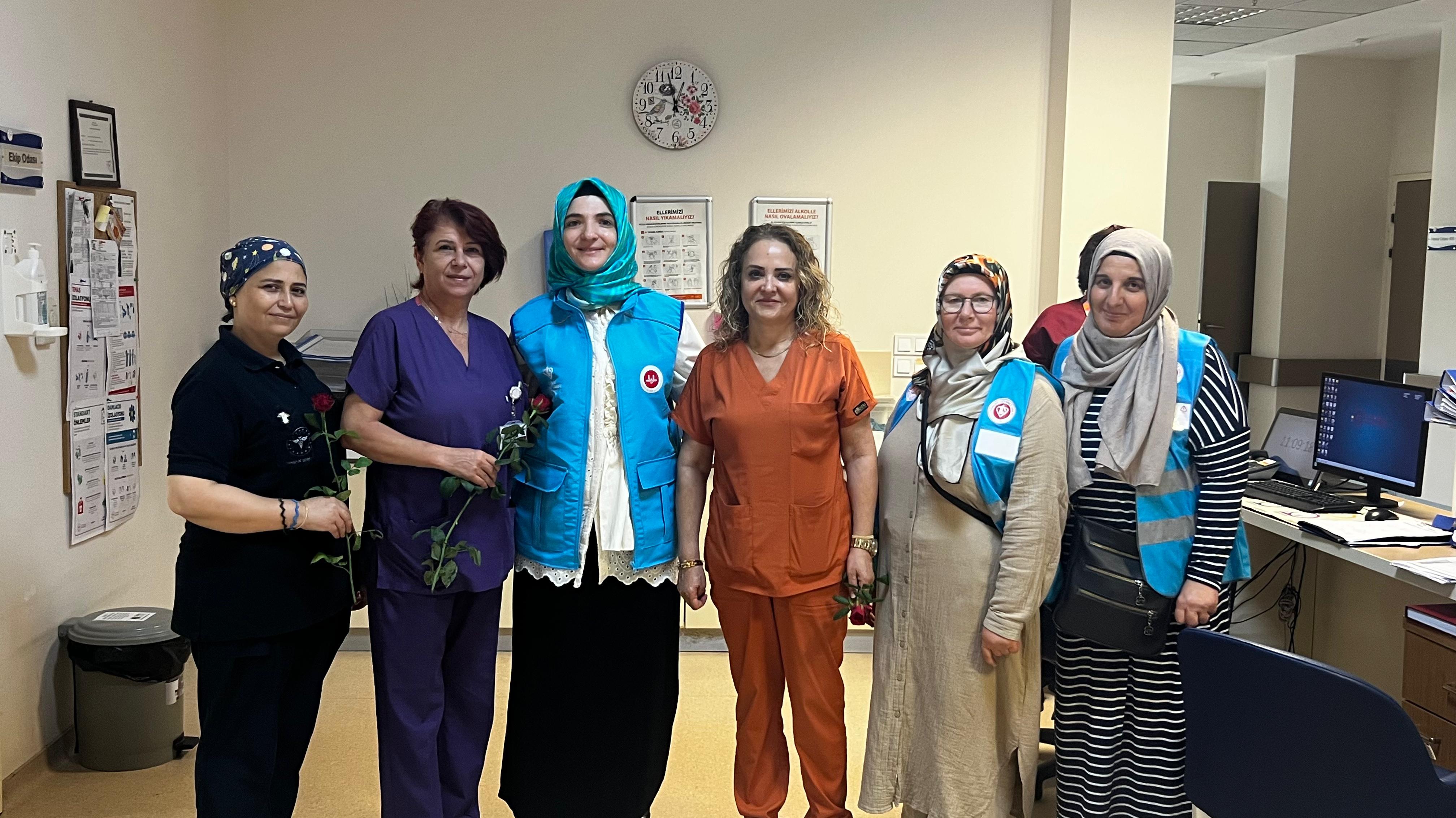 Etkinlikte TDV gönüllüleri, hasta odalarını tek tek ziyaret ederek hastalara ve yakınlarına güller takdim etti. Hastane personeline de gül sunulması, sağlık çalışanlarına moral ve motivasyon kaynağı oldu.