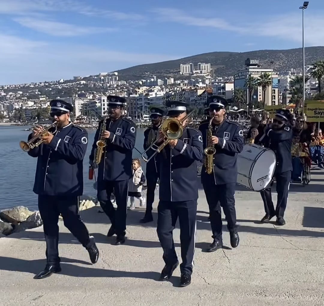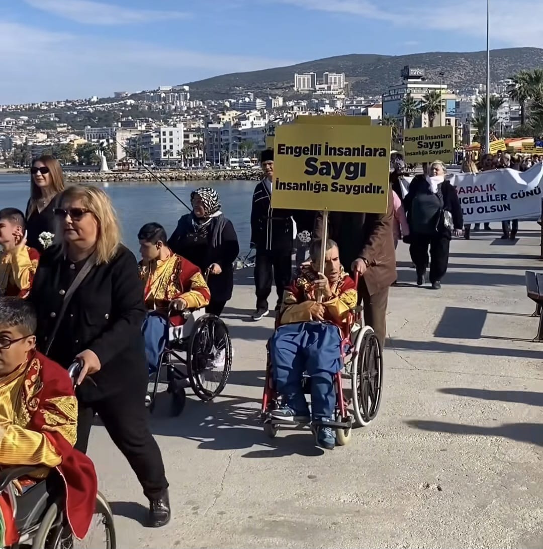 3 Aralık Dünya Engelliler Günü, Kuşadası’nda düzenlenen yürüyüşle anıldı. Dostluk Barış Meydanı’nda saat 12.00’de bir araya gelen engelli bireyler, aileleri ve destek veren vatandaşlar; Kuşadası Belediyesi bando takımı eşliğinde Atatürk Meydanı’na yürüdü. Etkinlikte amaç; engelli bireylerin toplum hayatındaki görünürlüğünü artırmak, eşit yaşam koşullarına dikkat çekmek ve farkındalığı çoğaltmaktı. Katılımcıların taşıdığı pankart ve mesajlar, bu yıl da engellerin değil dayanışmanın konuşulduğu bir Kuşadası tablosu ortaya koydu.