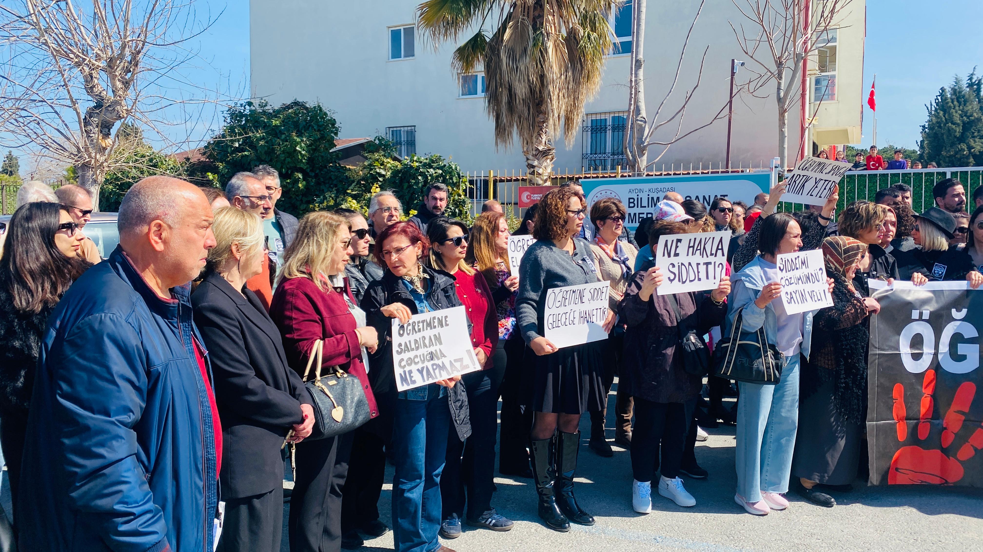 Saldırıya uğrayan öğretmenlerine sahip çıkan öğrenciler gözyaşlarını tutamazken, sağduyulu veliler de safını öğretmenden yana seçti. "Öğretmenimiz yalnız değildir" haykırışları, okul koridorlarından Kuşadası sokaklarına taştı. Veliler, çocuklarını emanet ettikleri eğitimcinin can güvenliğinin, kendi çocuklarının geleceği olduğunu gür bir sesle dile getirdi.