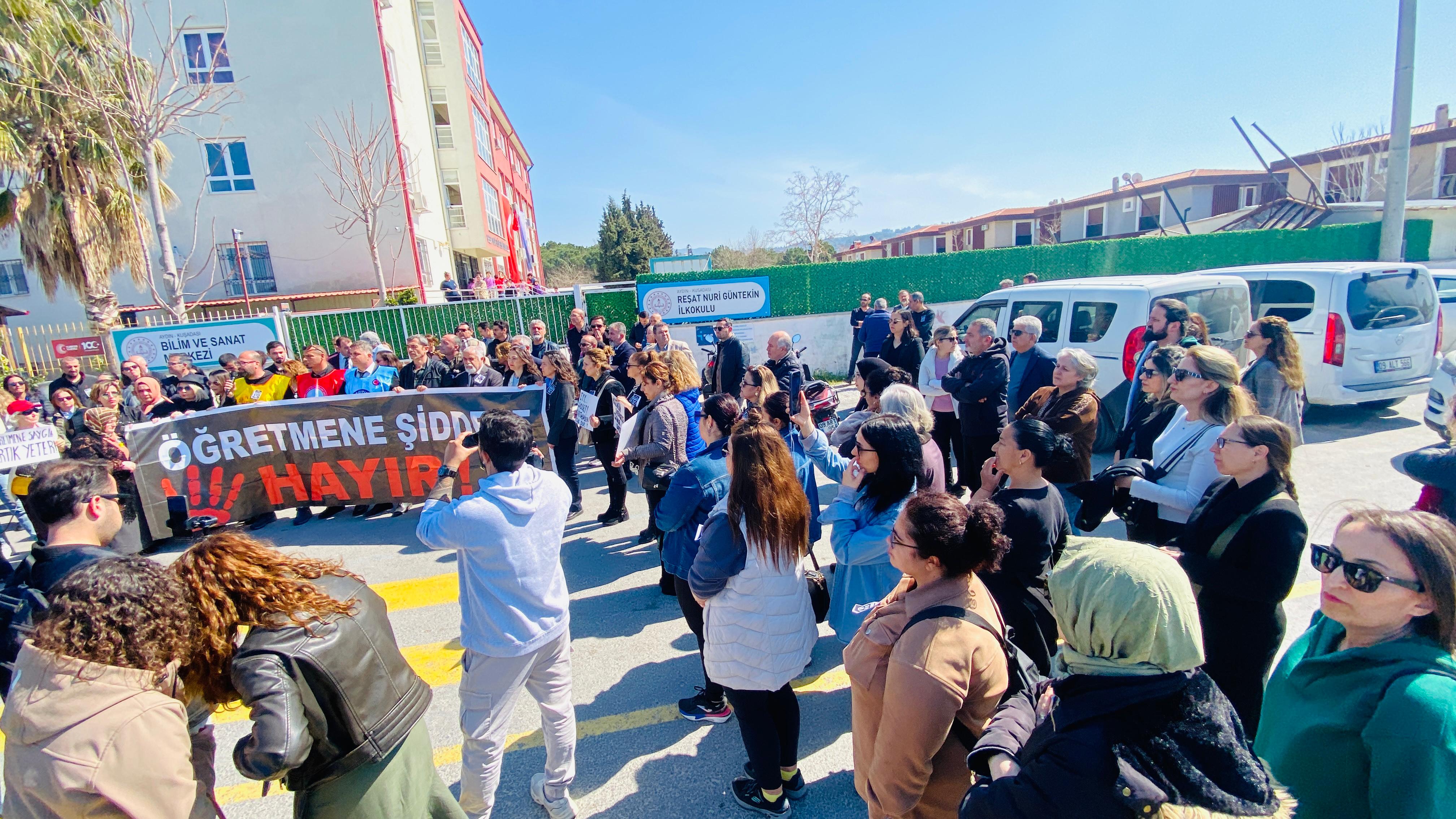Basın açıklamasında; Eğitim-Bir-Sen, Türk Eğitim-Sen, Eğitim-İş ve Eğitim-Sen temsilcileri yan yana durarak, şiddete karşı ortak bir manifesto yayınladı. Kuşadası’ndaki tüm eğitim sendikalarının eksiksiz katılım sağladığı eylemde, "failin en ağır cezayı alması" için ortak hukuk mücadelesi kararı alındı.