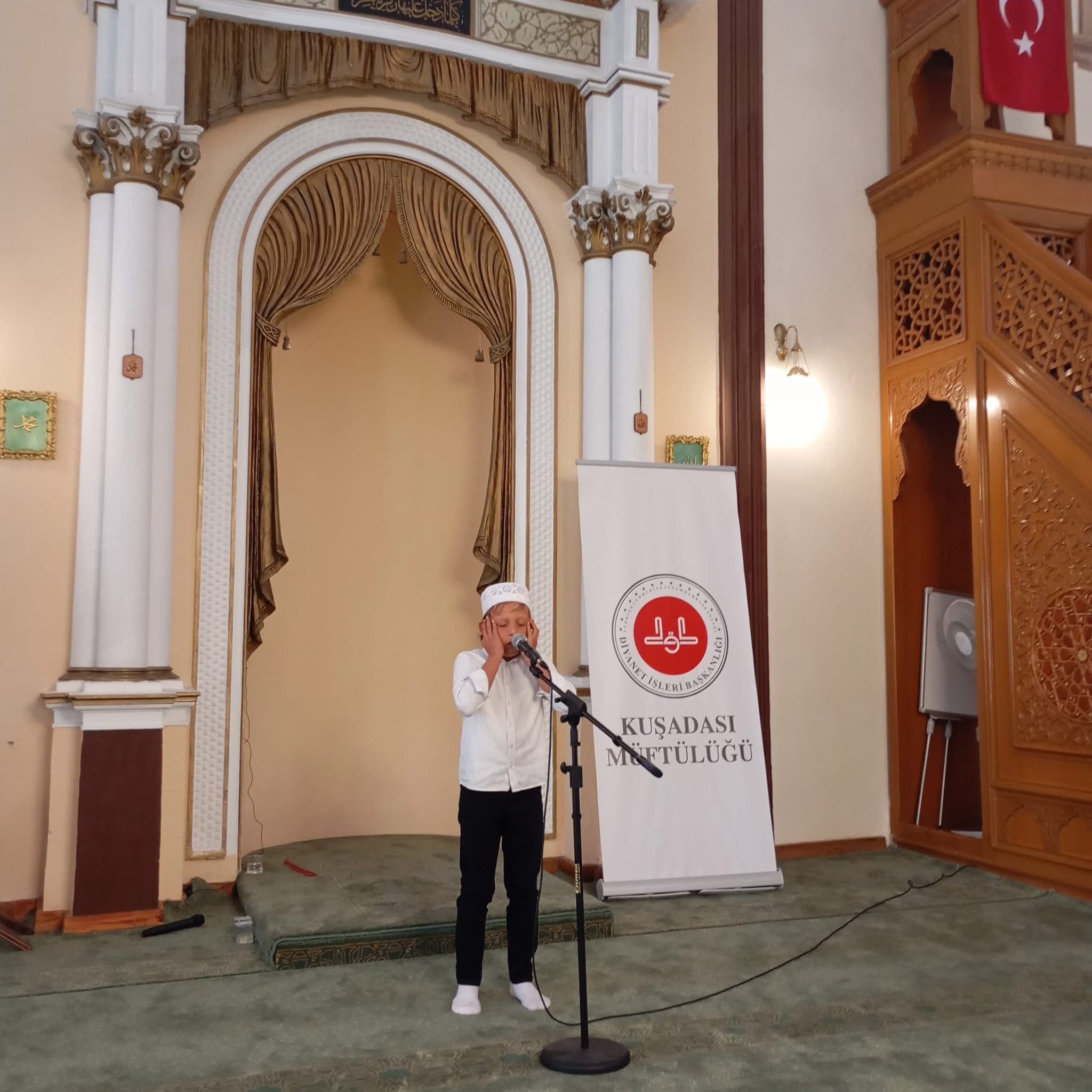 Kuşadası İlçe Müftülüğü Diyanet Gençlik Koordinatörlüğü, yaz Kur’an kurslarında eğitim gören öğrenciler arasında Kur’an-ı Kerim ve Ezan’ı Güzel Okuma Yarışması düzenledi. İlçedeki cami ve Kur’an kurslarından çok sayıda öğrencinin katıldığı programda gençler, hem Kur’an-ı Kerim tilaveti hem de ezan okuma performanslarıyla dinleyenleri mest etti.