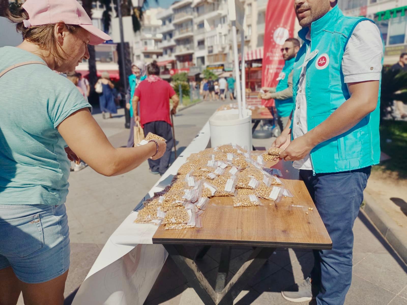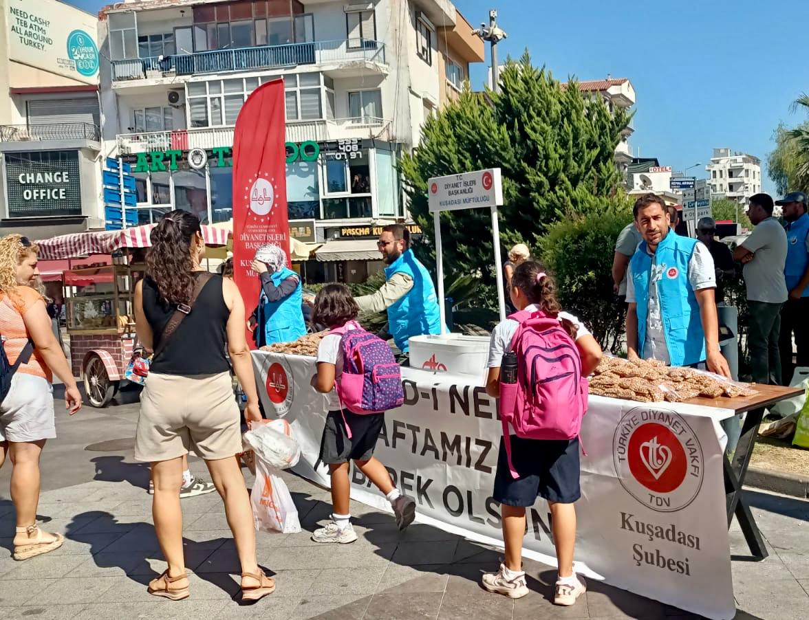 Sabahın erken saatlerinde kurulan stantta din görevlileri hazırlıklarını tamamladı. Etkinlik, Kur’an-ı Kerim tilaveti ve yapılan dua ile başladı. Ardından, Manisa’nın Kula ilçesinden hayırsever bir vatandaş tarafından gönderilen leblebiler, Türkiye Diyanet Vakfı Kuşadası Şubesi gönüllüleri ve din görevlilerinin katkılarıyla vatandaşlara ikram edildi.