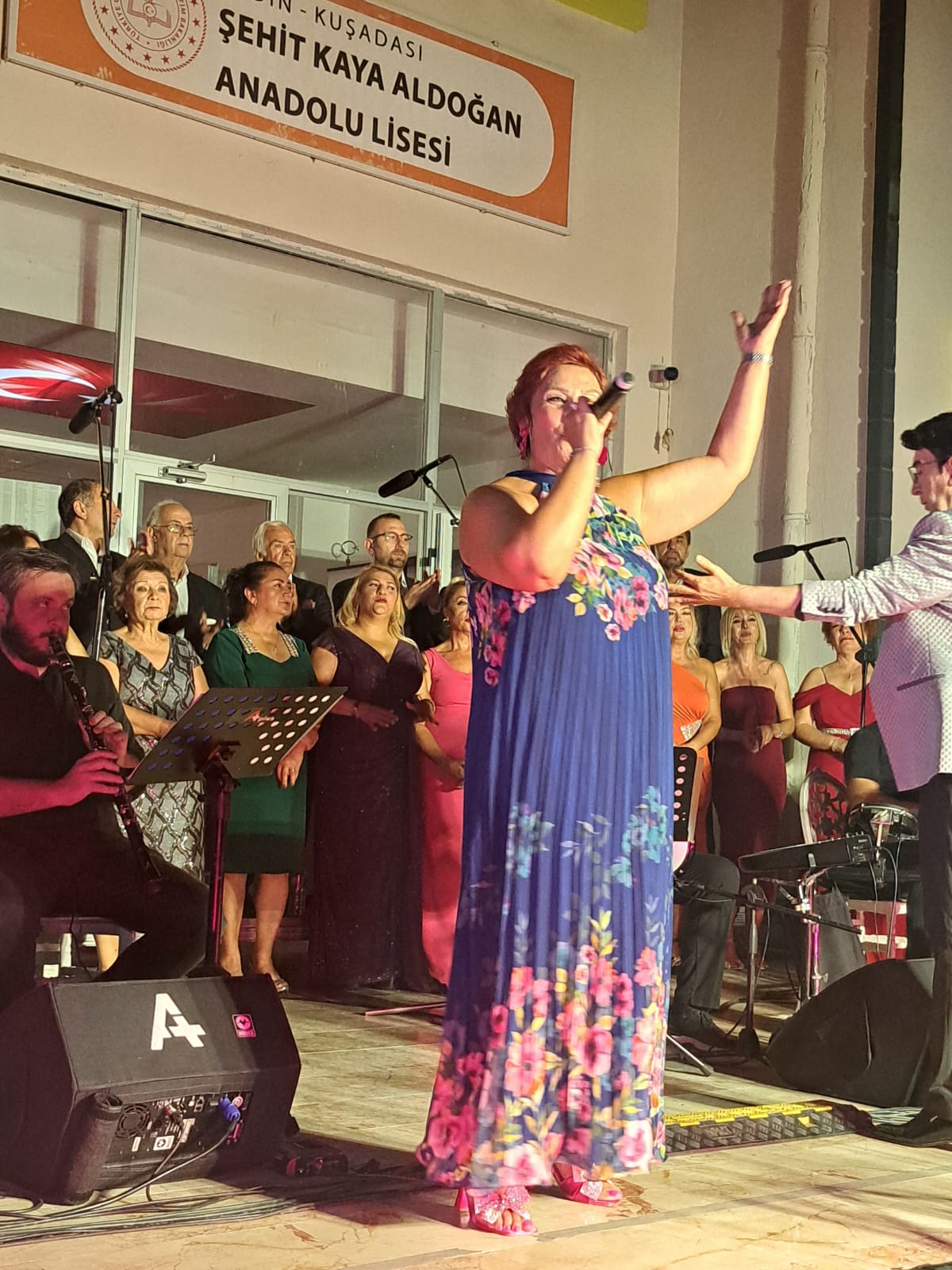 Kuşadası Şehit Kaya Aldoğan Anadolu Lisesi'nin bahçesinde gerçekleştirilen bu özel gece, sadece Türk Sanat Müziği’nin büyüsüyle değil, aynı zamanda eğitime destek amacıyla yapıldı. Türk Müzik Akademisi’nin yetenekli şefi Turgay Kızıltuğ’un yönettiği koro ve solistler, müzikle dolu bir akşam yaşatırken, okulun gelişimine katkı sağlamak için düzenlenen bu konser, izleyicilere hem sanatın hem de eğitimin gücünü bir arada sundu.