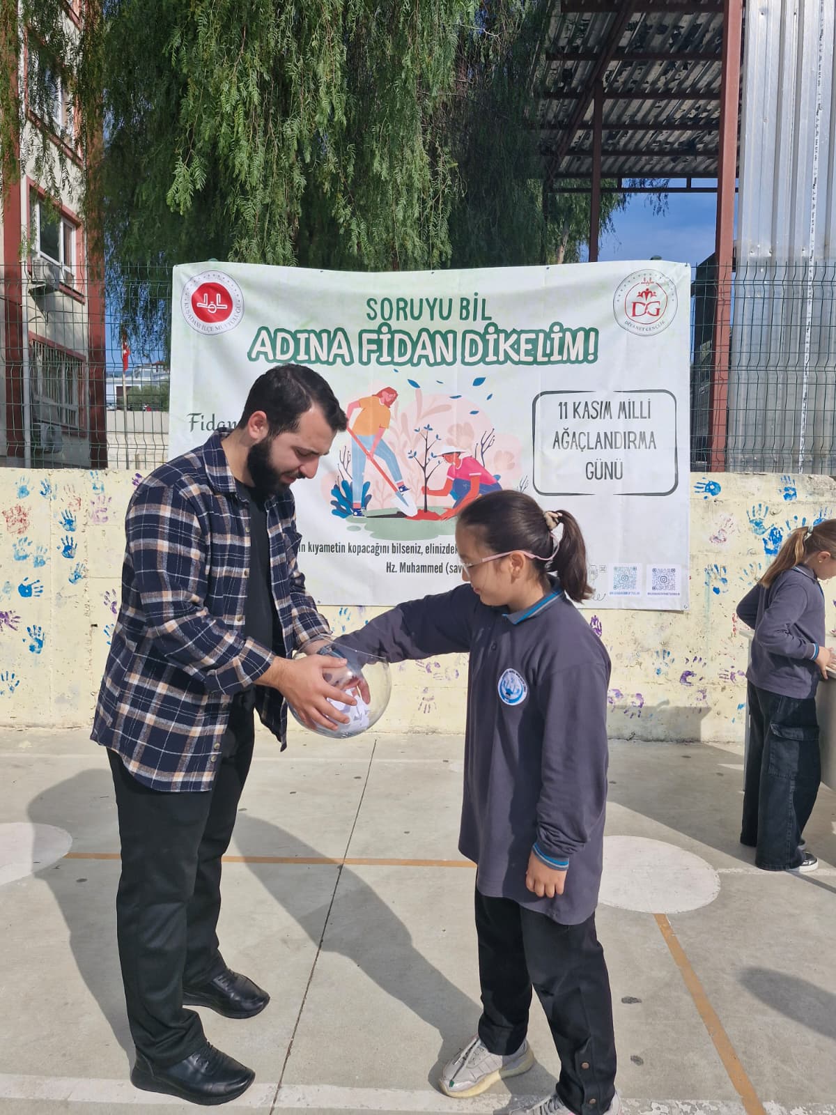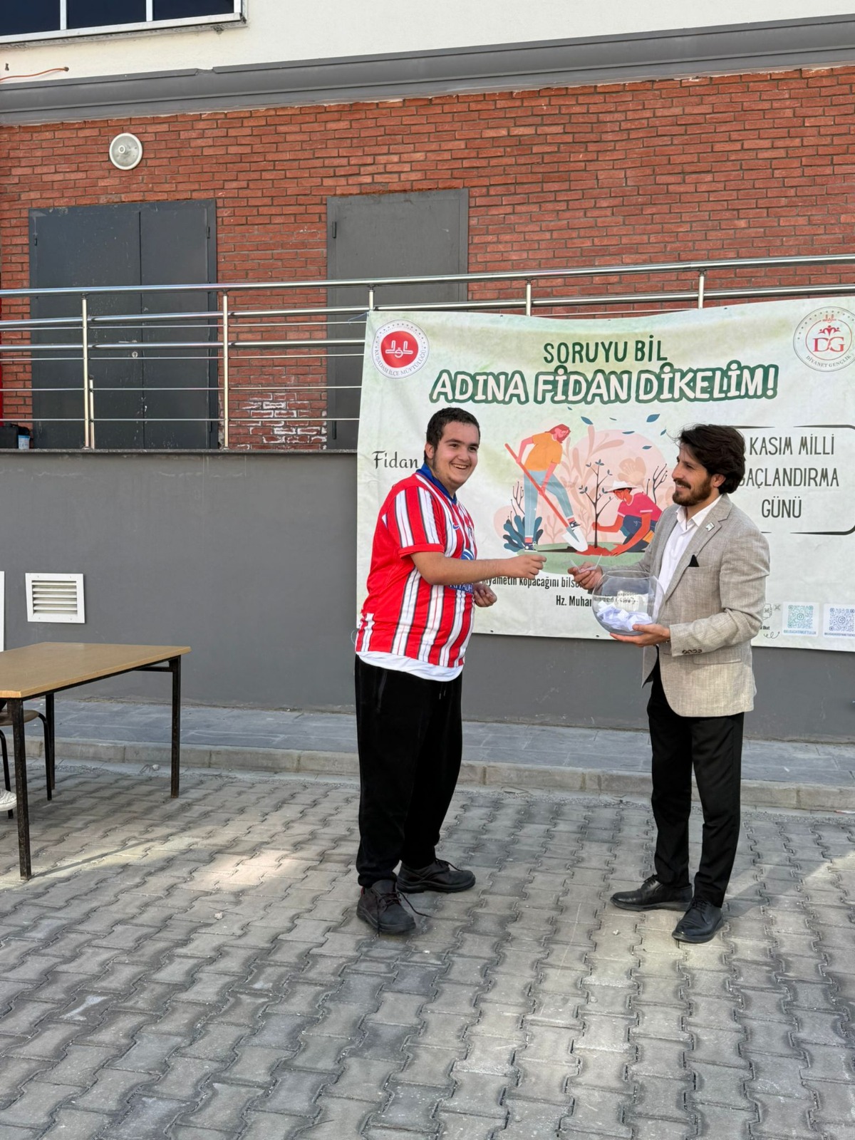 11 Kasım Millî Ağaçlandırma Günü’nün önemine dikkat çekmek amacıyla düzenlenen etkinlikte, öğrenciler bilgi yarışmasında ter döktü. Yarışmada soruları doğru yanıtlayan öğrencilerin isimleri, 11 Kasım’da dikilecek fidanlara verilecek. Böylece öğrencilerin bilgisi ve emeği, doğaya nefes olarak yansıyacak.