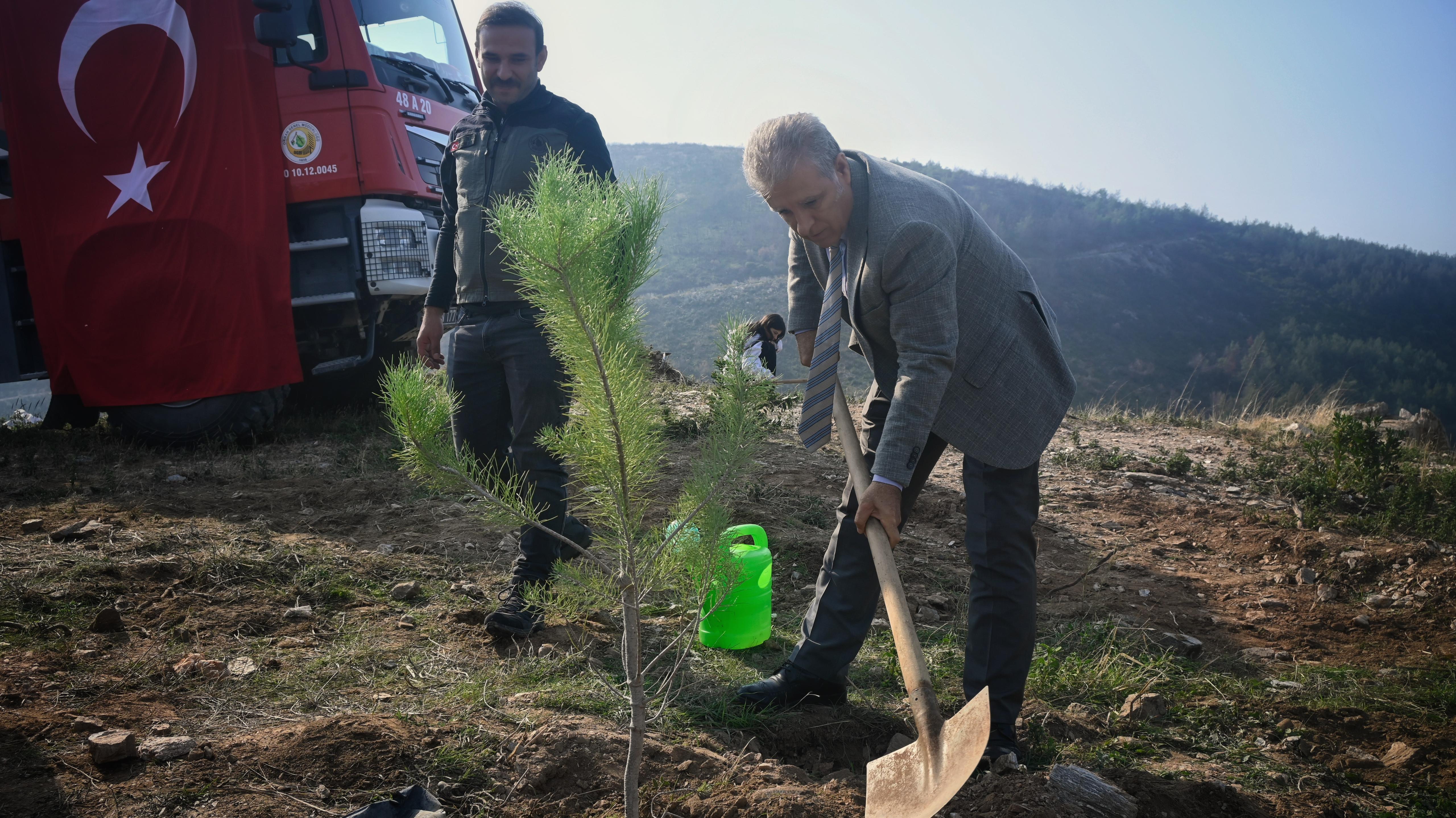 Kuşadası’nda düzenlenen etkinlikte, Kuşadası Kaymakamı İbrahim Keklik, İlçe Millî Eğitim Müdürü İbrahim Ataman ve öğrencilerle birlikte Arvalya Bölgesi’nde fidan dikimi yaptı.