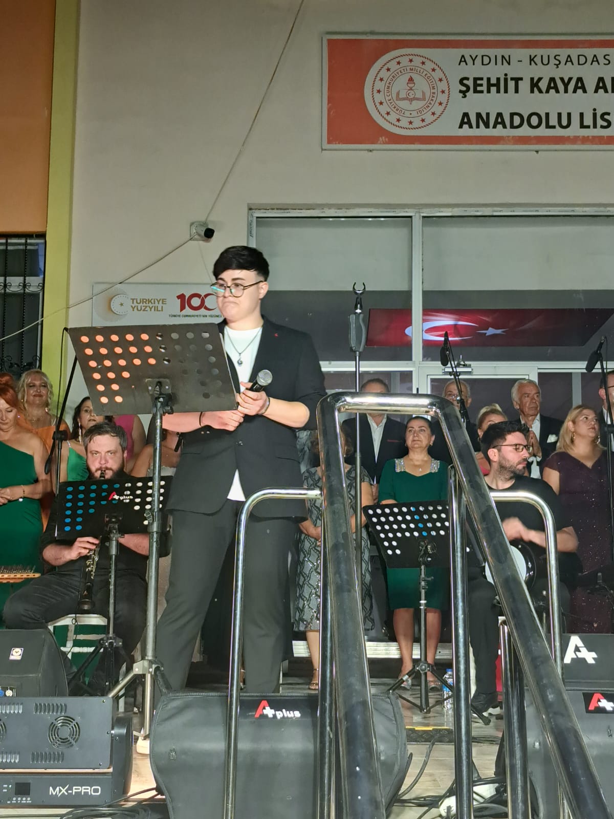 Kuşadası Şehit Kaya Aldoğan Anadolu Lisesi'nin bahçesinde gerçekleştirilen bu özel gece, sadece Türk Sanat Müziği’nin büyüsüyle değil, aynı zamanda eğitime destek amacıyla yapıldı. Türk Müzik Akademisi’nin yetenekli şefi Turgay Kızıltuğ’un yönettiği koro ve solistler, müzikle dolu bir akşam yaşatırken, okulun gelişimine katkı sağlamak için düzenlenen bu konser, izleyicilere hem sanatın hem de eğitimin gücünü bir arada sundu.